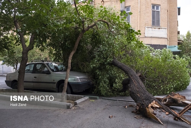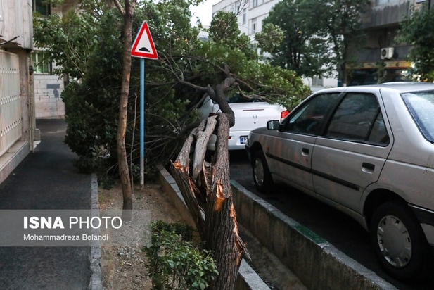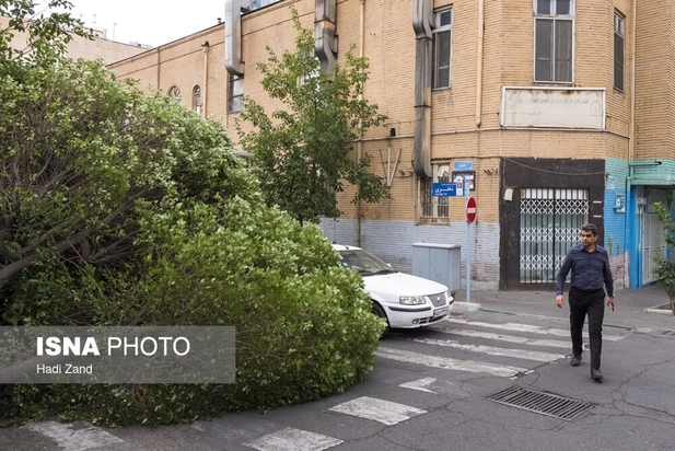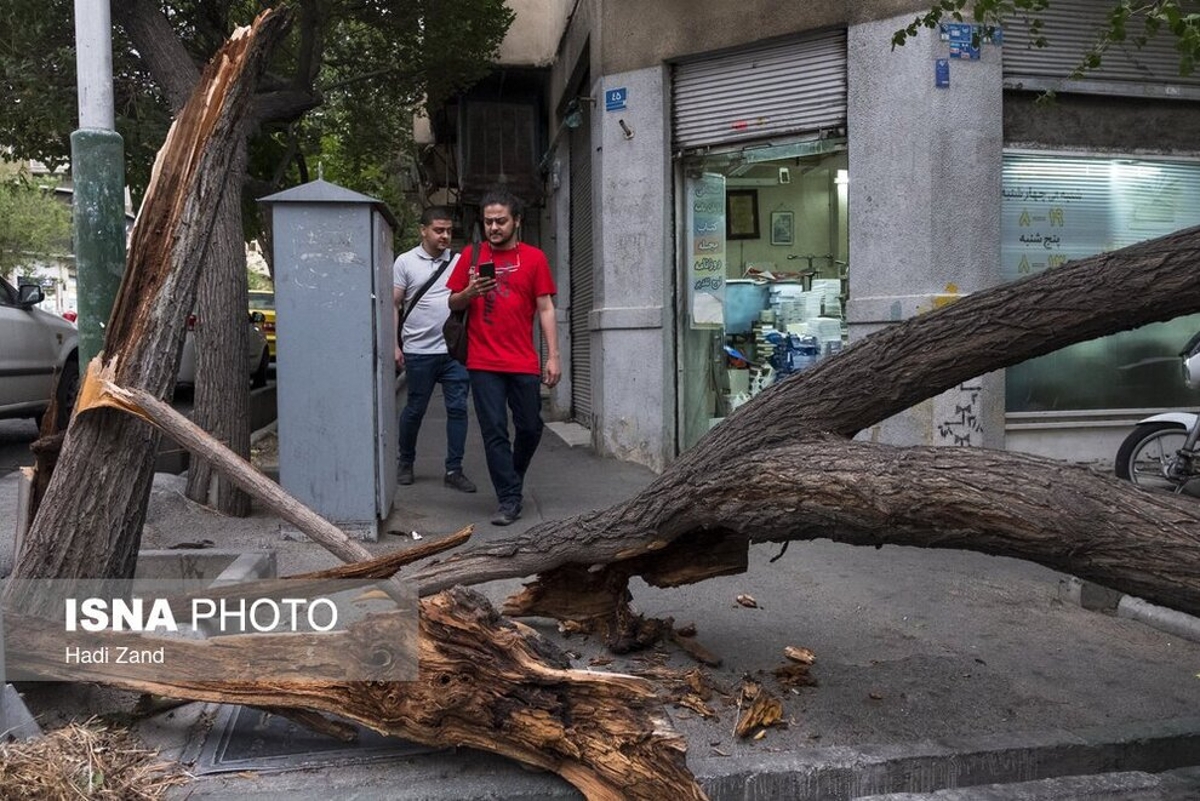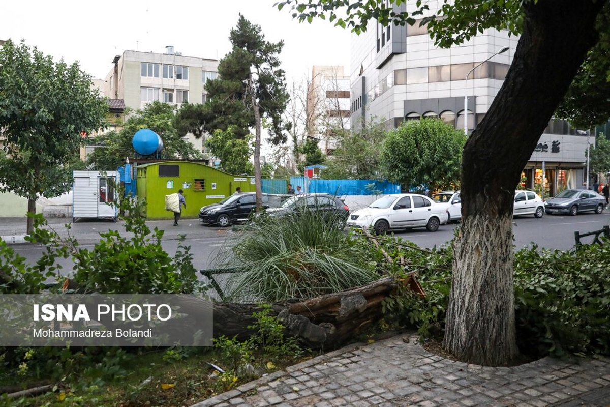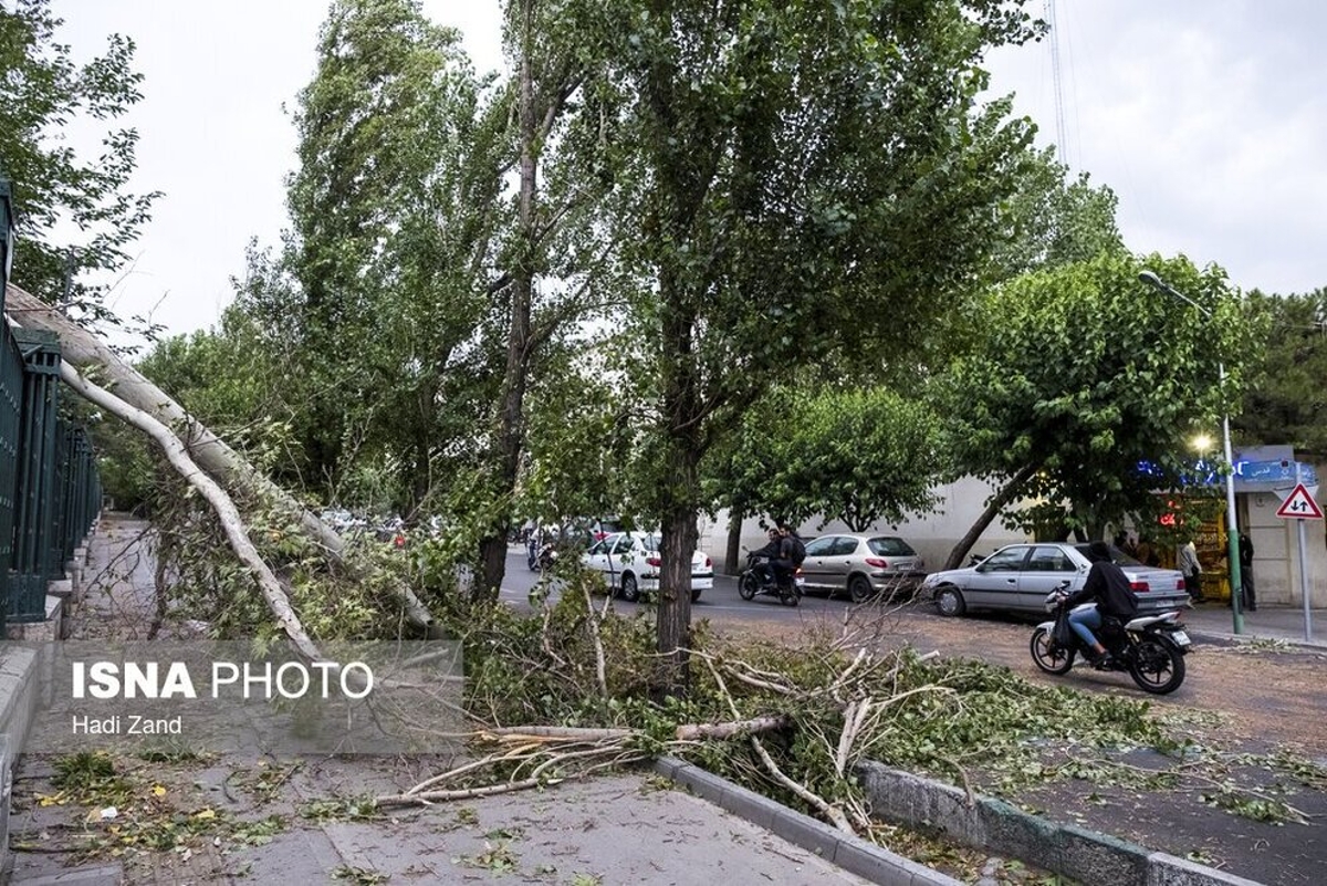 طوفان عصر پنجشنبه در تهران باعث خسارت به درختان و وسایل نقلیه شهروندان شد. به گفته سرپرست اورژانس تهران، بر اثر وزش باد شدید و طوفان در تهران ۹ نفر مصدوم شدند که از این تعداد ۳ نفر به بیمارستان اعزام و بقیه در محل درمان شدند. در تصاویر روز عکس هایی از شکستن درختان و آسیب این طوفان به خودروها و اجناس فروشندگان را ببینید.