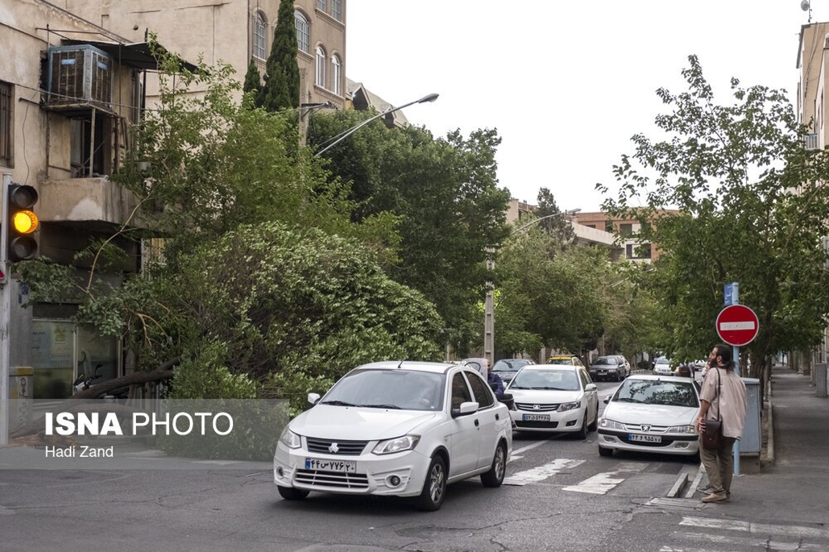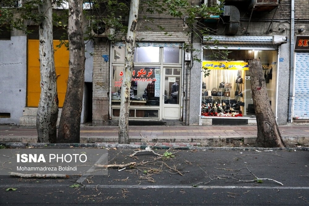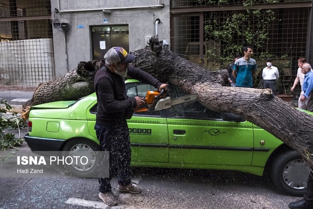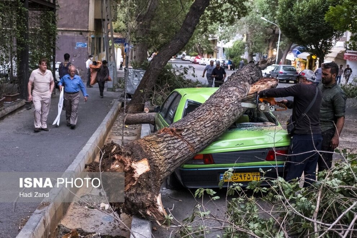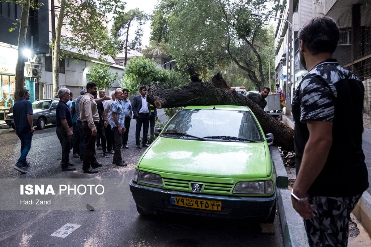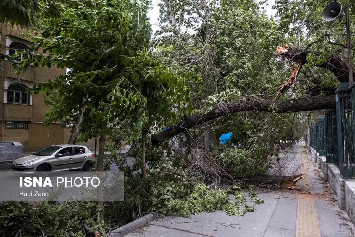 طوفان عصر پنجشنبه در تهران باعث خسارت به درختان و وسایل نقلیه شهروندان شد. به گفته سرپرست اورژانس تهران، بر اثر وزش باد شدید و طوفان در تهران ۹ نفر مصدوم شدند که از این تعداد ۳ نفر به بیمارستان اعزام و بقیه در محل درمان شدند. در تصاویر روز عکس هایی از شکستن درختان و آسیب این طوفان به خودروها و اجناس فروشندگان را ببینید.