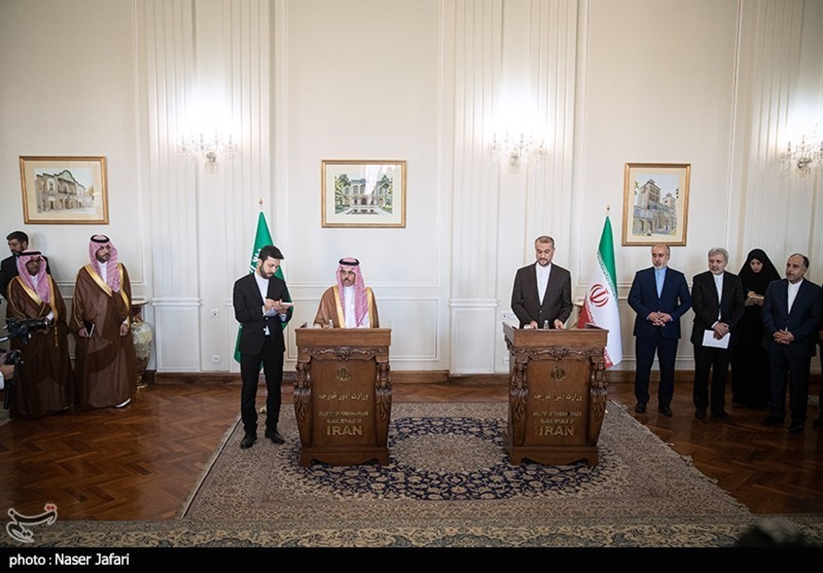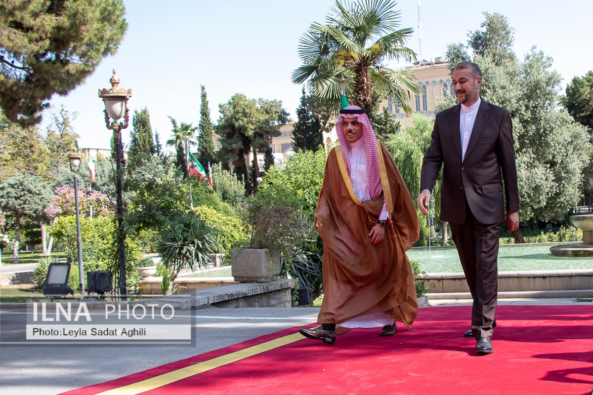 فیصل بن فرحان، وزیر خارجه عربستان که به تهران سفر کرده است، بعد از ظهر شنبه ۲۷ خردادماه در محل وزارت امور خارجه جمهوری اسلامی ایران مورد استقبال همتای ایرانی خود قرار گرفت.