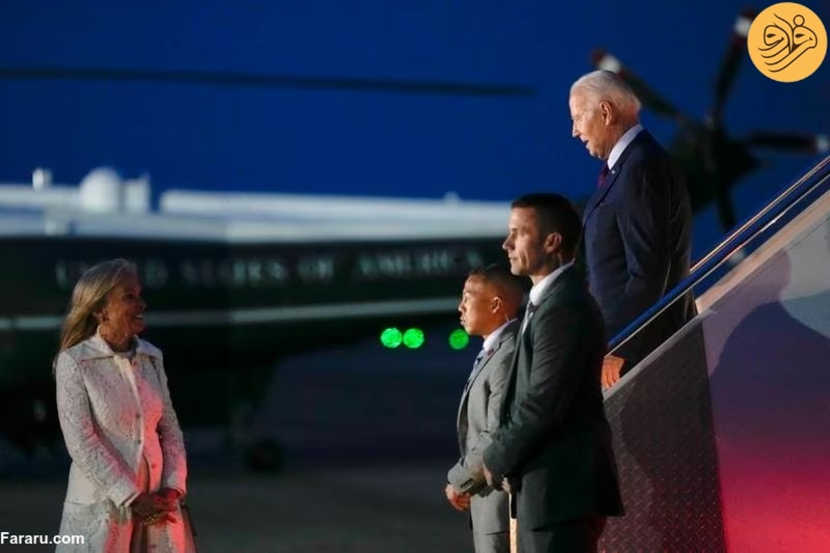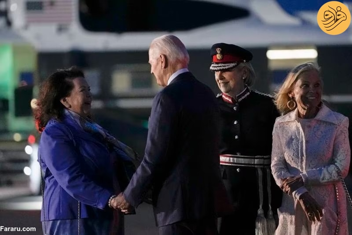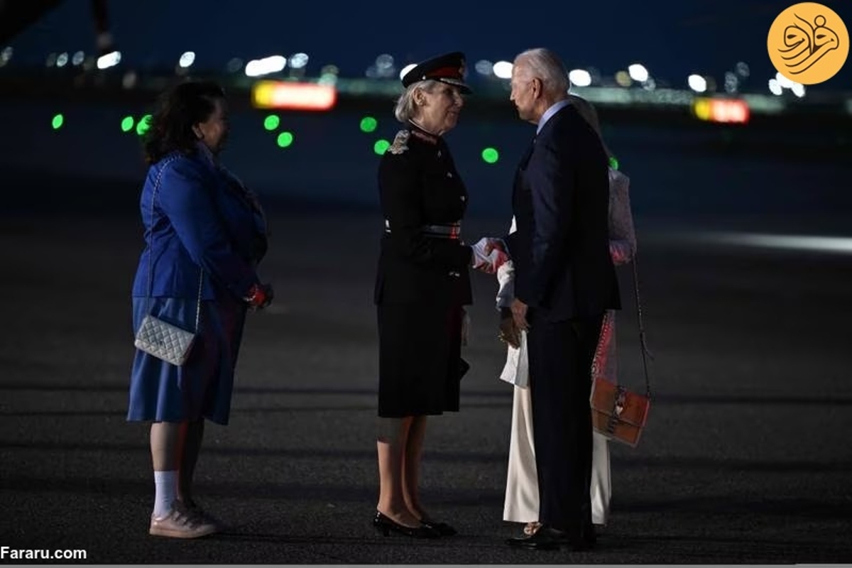 ویدئویی از لحظه پایین آمدن بایدن از هواپیما در فرودگاه استانستد در شمال شرق لندن منتشر شده است، جایی که رئیس جمهور آمریکا هنگام پایین آمدن از پله‌های هواپیما لحظه‌ای توقف کرد و کمی بالا پرید، که نشان می‌دهد سالم و بدون هیچ حادثه‌ای پایین می‌آید، به خصوص که در طول سفرهایش در موقعیت‌های شرم‌آوری قرار می‌گرفت و روی پله‌ها سقوط می‌کرد.
