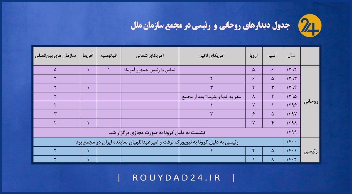 مقایسه دیدارهای روحانی و رئیسی در مجمع سازمان ملل +جدول