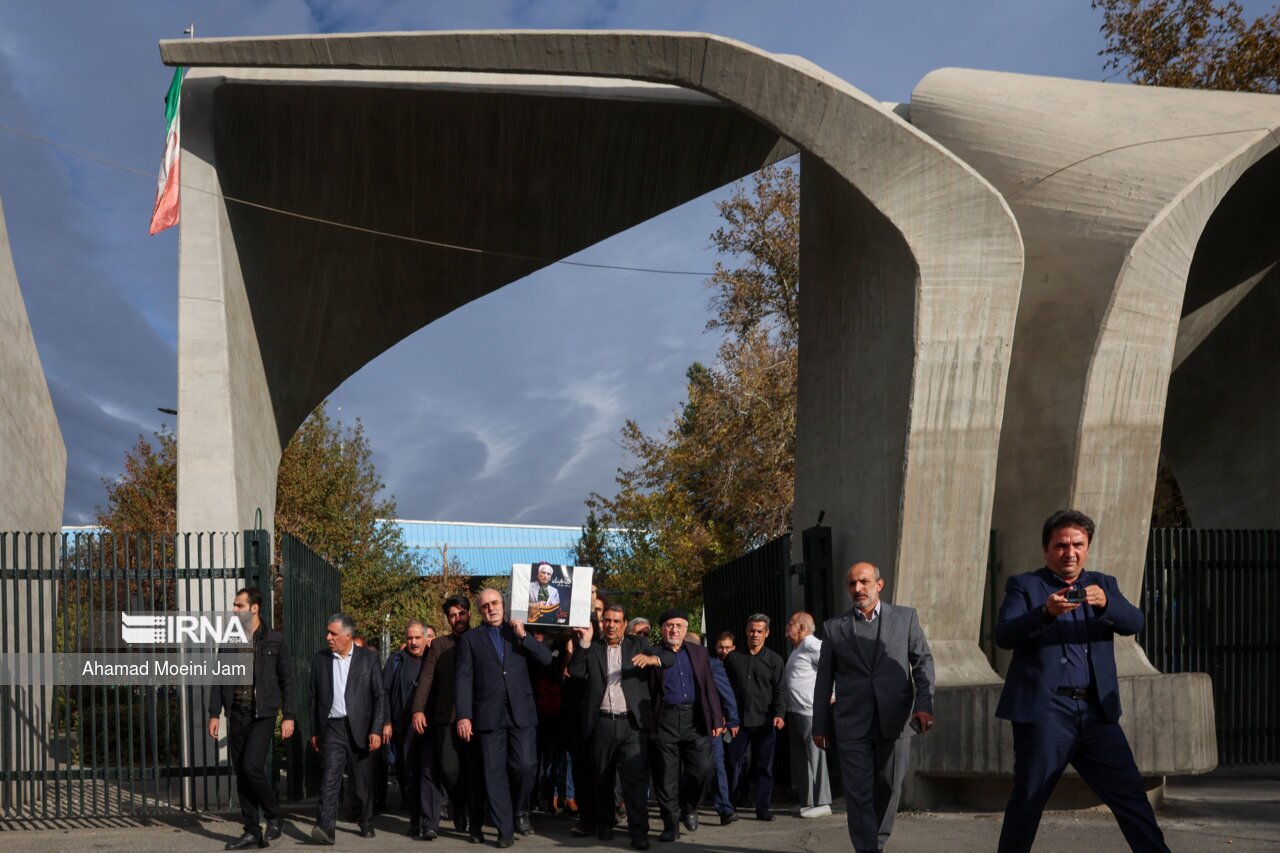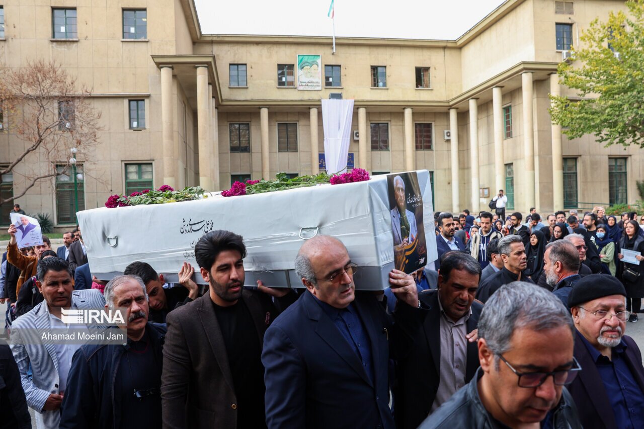 پیکر محمدعلی اسلامی ندوشن صبح دوشنبه (۲۹ آبان ۱۴۰۲) با حضور جمعی از اهالی ادب از مقابل دانشکده ادبیات دانشگاه تهران تشییع و جهت برگزاری مراسم بزرگداشت به موسسه اطلاعات منتقل شد.