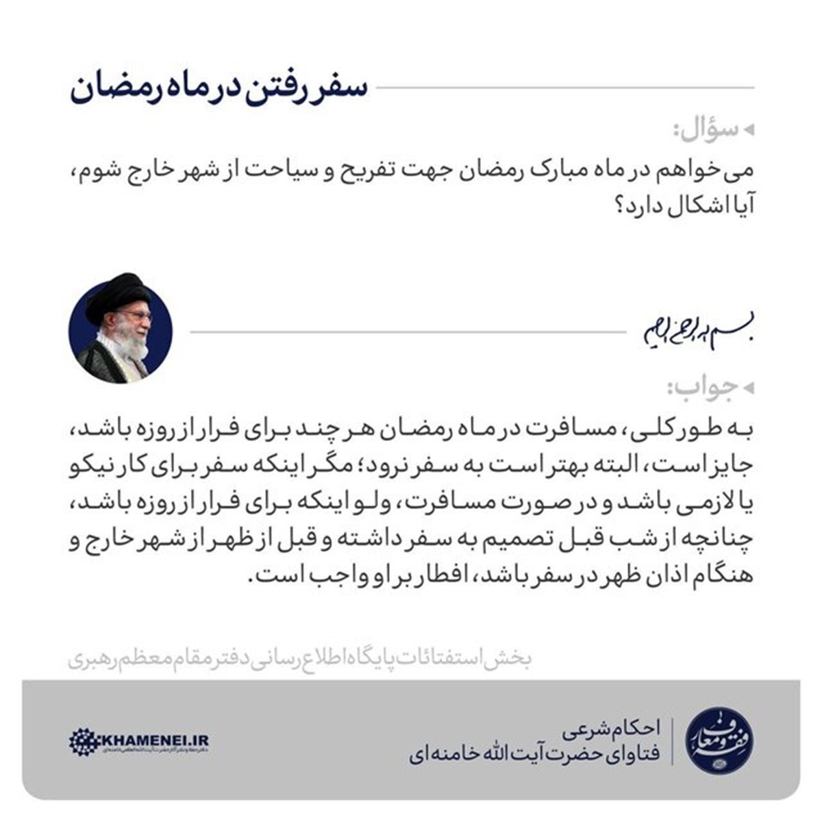 سفر رفتن در ماه رمضان از نظر آیت الله خامنهای