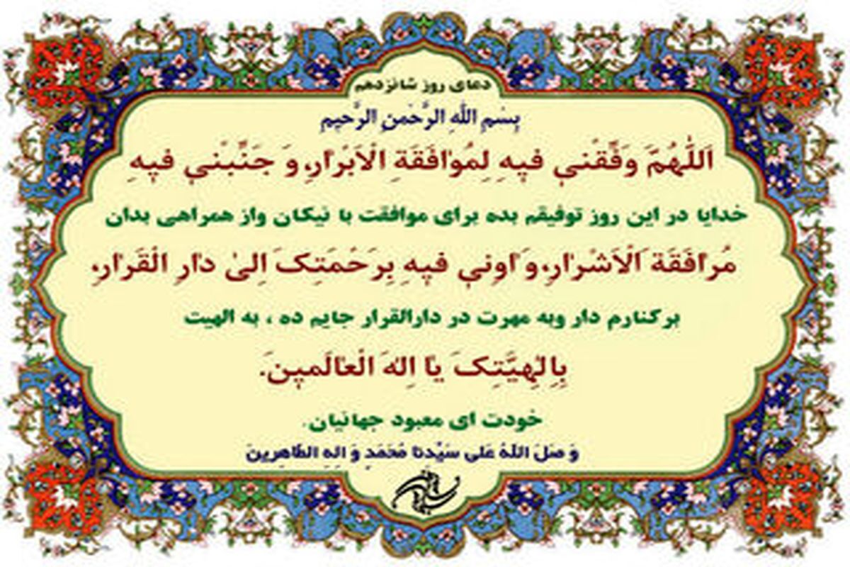 «خدایا، مرا در این ماه به همراهی و همسویی با نیکان توفیق ده و از همنشینی با بدان دور بدار و بهحق رحمتت به خانه آرامش جایم ده، به پرستیدگیات ای پرستیدهی جهانیان»