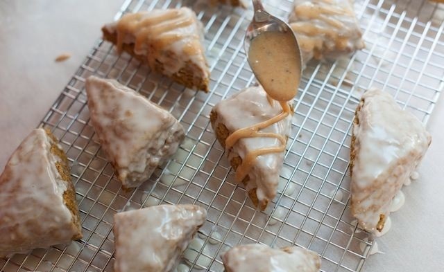اسکونها را از فر خارج کنید، هنگامیکه کامل خنک شدند روی آنها کرم نارگیل و پودر نارگیل بریزید.