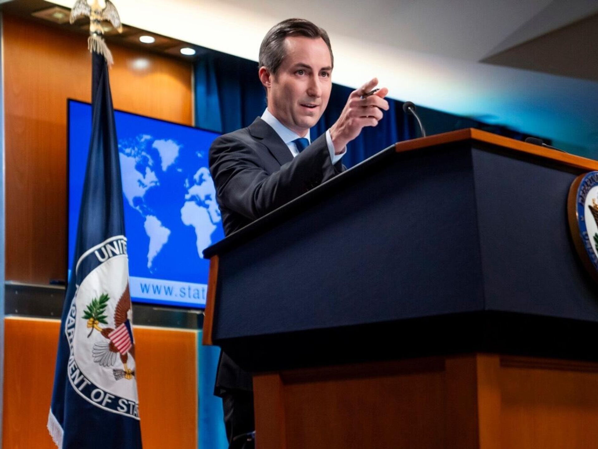 خبرنگار در نشست خبری «متیو میلر» سخنگوی وزارت خارجه آمریکا از او پرسید: مقامات ایران تهدید کرده اند که از اسرائیل انتقام خواهند گرفت و اسرائیل به نیروهای خود دستور داده که خود را برای حمله ایران آماده کنند. آیا شما نگران شعله ور شدن منطقه در نتیجه این حمله هستید؟