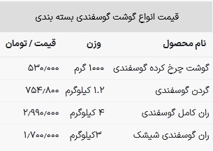 شما در جدول زیر میتوانید قیمت انواع گوشت گوسفندی در بازار تهران را مشاهده کنید: