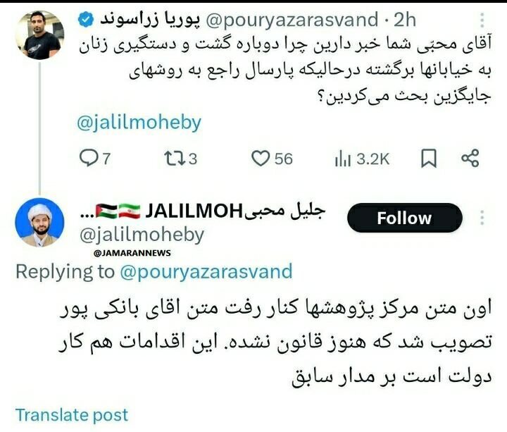 رویداد۲۴ وی در پاسخ به یک کاربر گفته است؛ اون متن مرکز پژوهشها کنار رفت متن آقای بانکی پور تصویب شد که هنوز قانون نشده، این اقدامات هم کار دولت است بر مدار سابق.