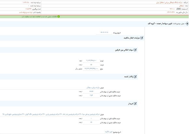 رویداد۲۴ ایسنا نوشت: بر اساس اطلاعیه جدید کدال، جزئیات تغییرات سهام عمده باشگاه استقلال اعلام و به این ترتیب مشخصات مالکان جدید این باشگاه مشخص شد.