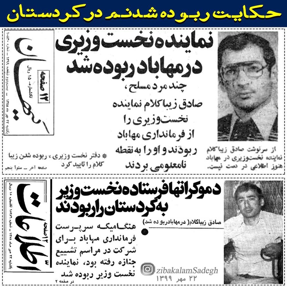 صادق زیباکلام عکسی از روزنامه کیهان مربوط به سال ۵۸ که تیترهایی درباره ربوده شدنش در آن درج شده بود در صفحه اینستاگرام خود منتشر کرد. او ماجرای ۲۱ مهر سال ۵۸ را اینگونه بازگو کرد: