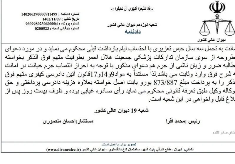 با توجه به اینکه رای دیوان عالی در بهمن ماه سال ۱۴۰۲ صادر و تنظیم شده است و حدود سه ماه از این حکم میگذرد، موضوع صدور «اعلان قرمز» این مجرم را که در حال حاضر، در خارج از کشور بهسر میبرد، از پلیس اینترپل پیگیری کرد.