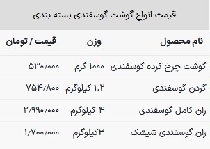 شما در جدول زیر می‌توانید قیمت انواع گوشت قرمز در بازار تهران را مشاهده کنید:
