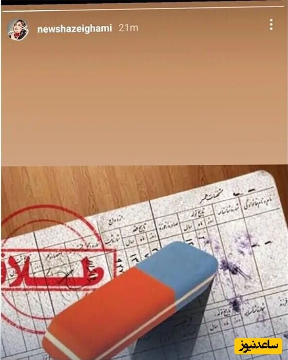 نیوشا ضیغمی عکسی از شناسنامهای که مهر طلاق دارد را منتشر کرد. او استوری خود را بعد از ساعاتی حذف کرد که همین موضوع سبب دوگانی درباره خبرهای جدایی نیوشا ضیغمی از همسرش شده است.