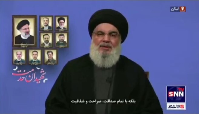 رویداد ۲۴ | دبیرکل حزبالله در آیین گرامیداشت چهلمین روز شهادت رئیسی و همراهانش گفت: دیگر به نیابت از محور مقاومت شهادت رئیسجمهور ایران و همراهان را تسلیت میگویم. نظام جمهوری اسلامی فقط مسیر و اینده ملت ایران نیست بلکه اینده و مسیر هم ملتهای منطقه و دژ محکم در مقابل ظالمان، غارتگران و مستکبران است.