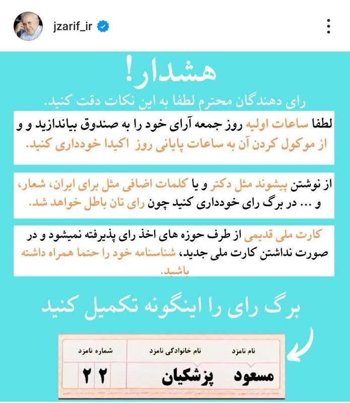 وزیر خارجه دولت تدبیر و امید درخصوص نحوه رای دادن در انتخابات ریاست جمهوری، هشدارها و پیشنهاداتی، داد.
