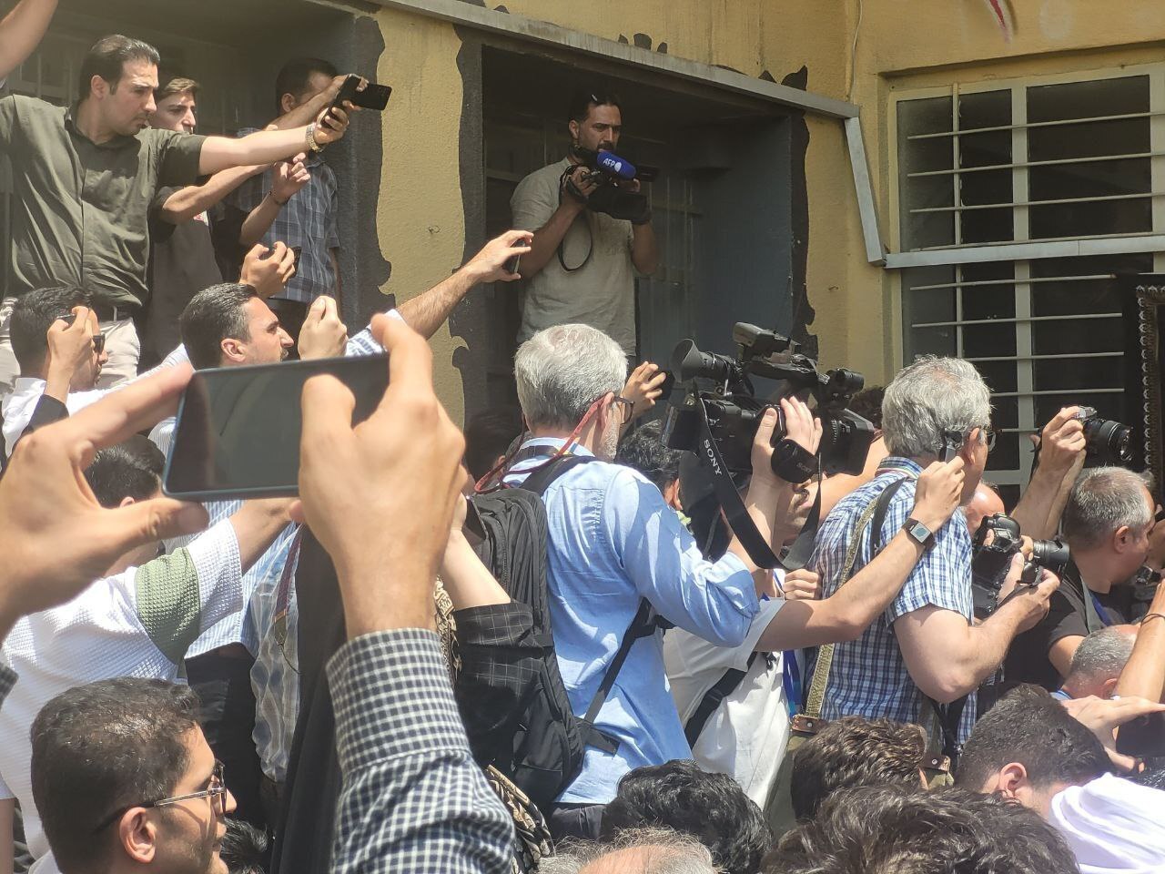رویداد۲۴| طبق اخبار دریافتی، مسئولان شعبه پس از مشاهده ازدحام جمعیت، صندوق رای را از حیاط به همراه پزشکیان و ظریف به داخل ساختمان مدرسه بردند و در این میان، عکاسان هم مانند مردم عادی بیرون ساختمان ماندند و نتوانستند از رای دادن پزشکیان و ظریف تصویری ثبت کنند.