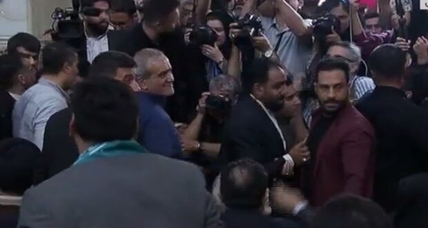 تصاویری از استقبال مردم از مسعود پزشکیان در حرم امام خمینی