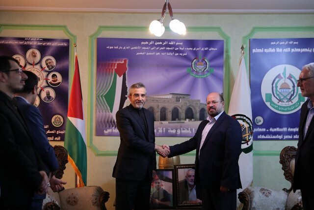 رویداد24| «علی باقری» سرپرست وزارت امور خارجه جمهوری اسلامی ایران روز دوشنبه و در جریان حضور در دفتر حماس در تهران، با «خالد قدومی» نماینده این جنبش در تهران دیدار و رایزنی کرد.