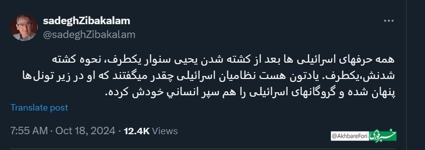 عکس| توئیت زیباکلام برای شهادت یحیی سنوار