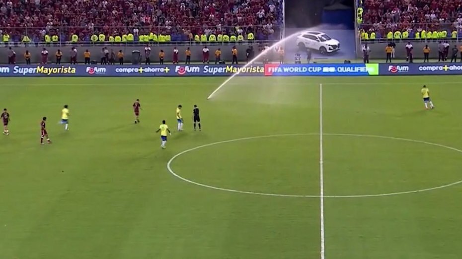 آبپاشهای زمین چمن در بازی برزیل و ونزوئلا فعال شد.