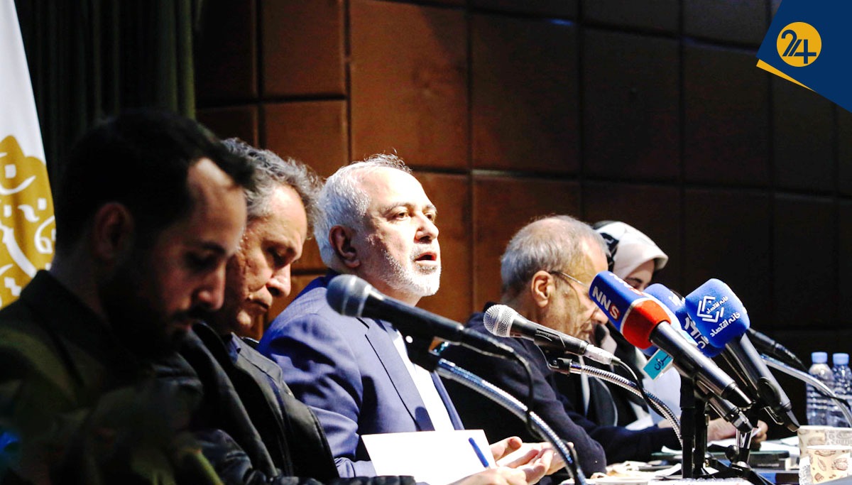 شرح عکس: از راست به چپ: هادی خانیکی، محمدجواد ظریف، محمد فاضلی و محمد رهبری در مراسم رونمایی از کتاب «توئیتری‌شدن سیاست» | منبع: ایرنا