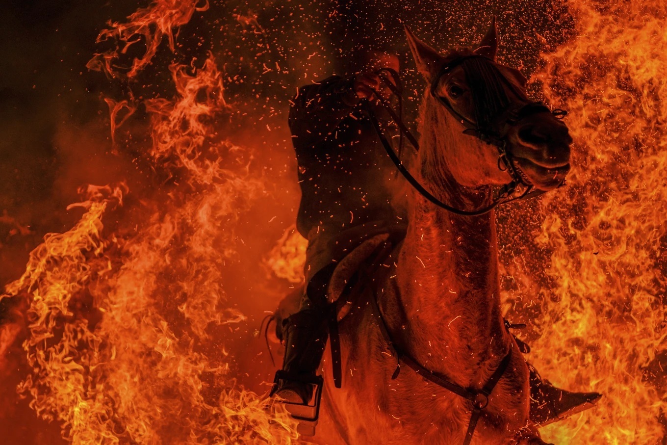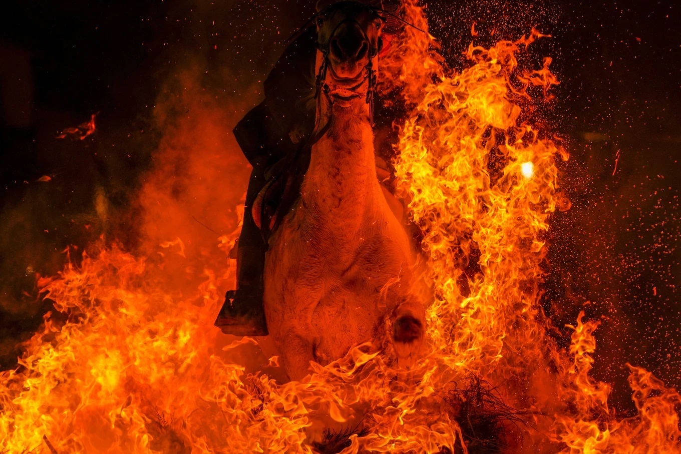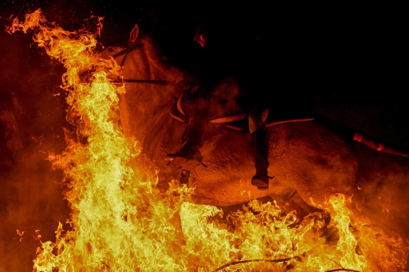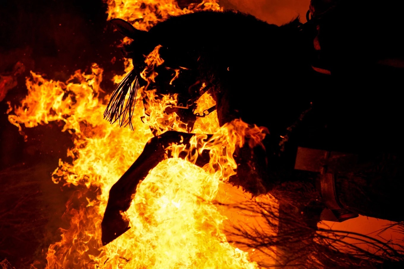 رویداد۲۴| این یک سنت چند صد ساله در دهکده اسپانیایی در حدود ۱۰۰ کیلومتری (۶۰ مایلی) شمال غربی مادرید است که هر ساله به افتخار سنت آنتونی ابوت، قدیس حامی حیوانات برگزار میشود. سوارکاران اسبها را از میان آتشهای روشن در وسط خیابان راهنمایی میکنند که تصور میشود در سال آینده حیوانات را پاکسازی میکند.