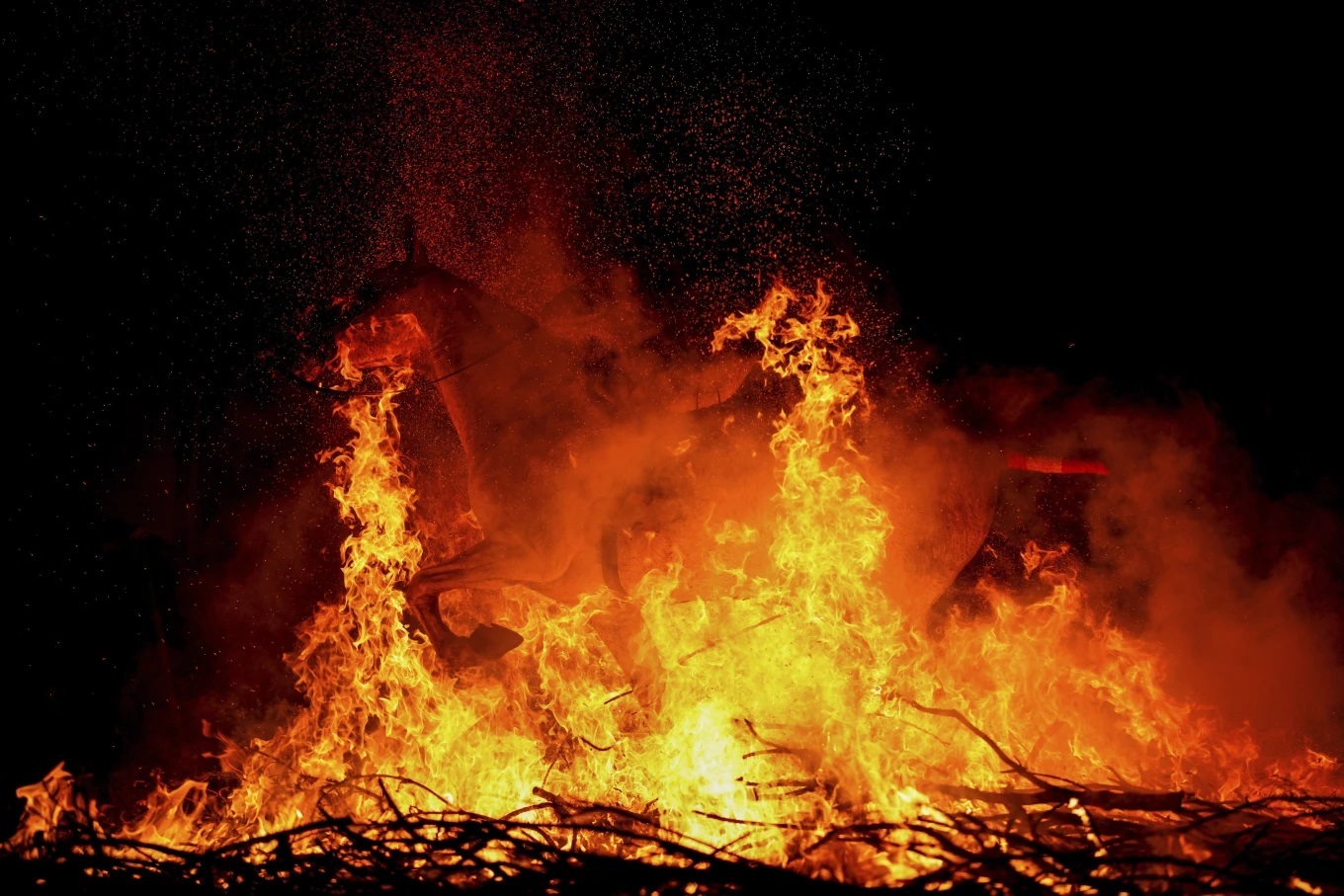 در یک شب سرد ژانویه، صدها نفر در خیابانهای سنگفرش شده باریک و شیبدار سن بارتولوم د پینارس (جمعیت ۵۰۰ نفر) جمع شدند تا منظرهای دراماتیک را تماشا کنند: اسبهایی که از میان شعلههای آتش میچرخند.