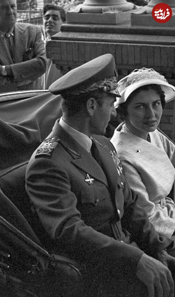 این تصویر که در اردیبهشت سال ۱۳۳۶ و چند ماه پیش از طلاق محمدرضا پهلوی و ثریا اسفندیاری به ثبت رسیده است، آنها را در سویا اسپانیا نشان میدهد.