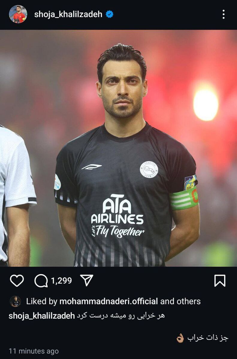 رویداد۲۴| شجاع خلیل زاده کاپیتان تیم تراکتور در واکنش به حکم کمیته استیناف پست جدیدی منتشر کرد.