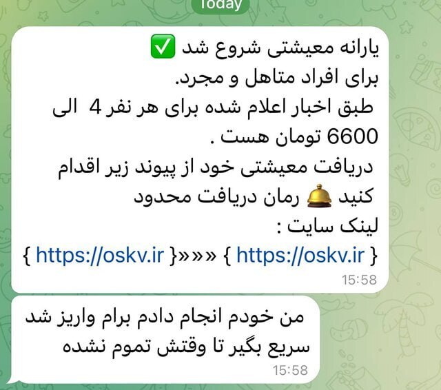 مراقب این پیامک جعلی یارانه معیشتی باشید