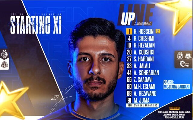 ترکیب آبیپوشان تهران در این دیدار به شرح زیر است:
