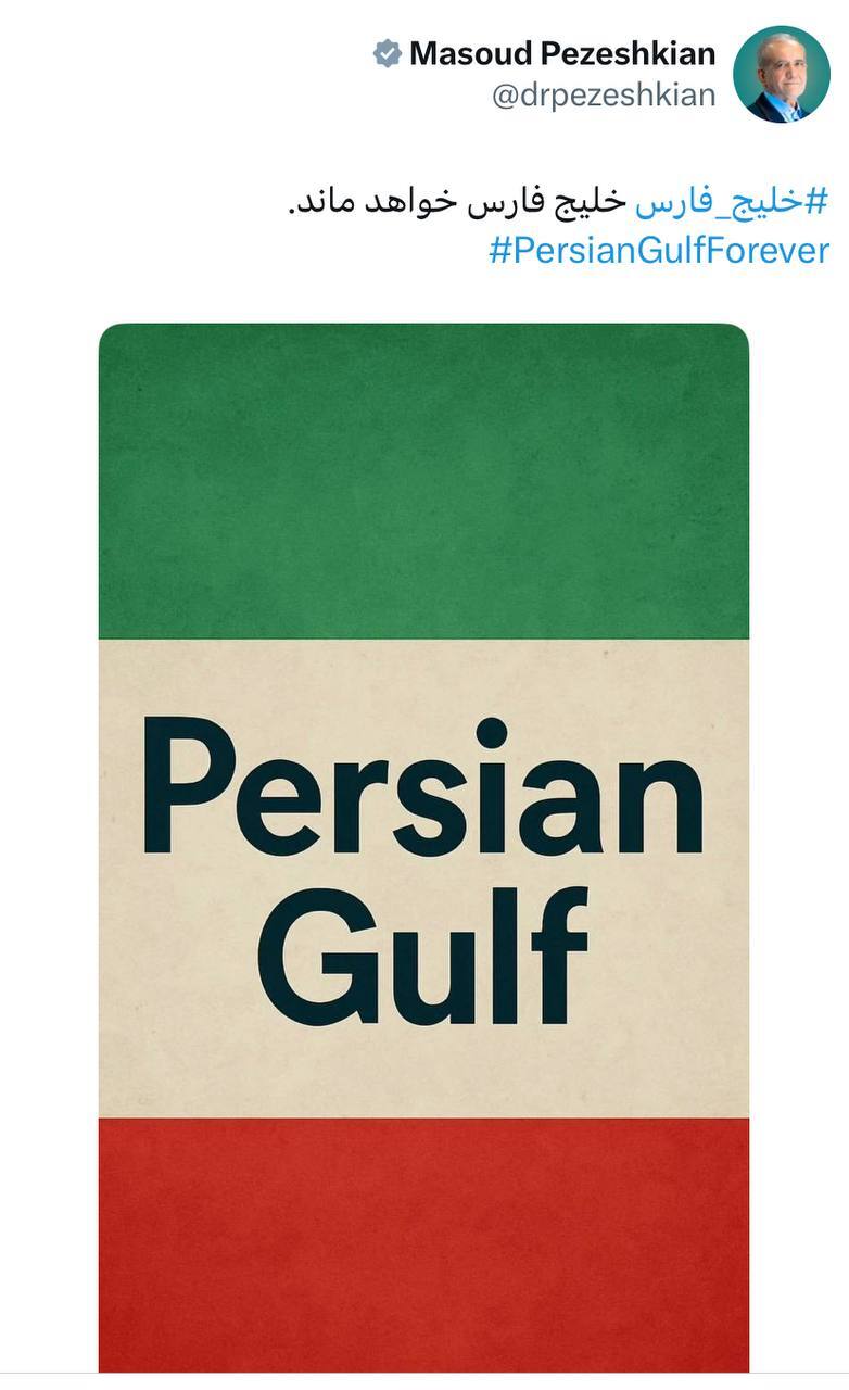 پزشکیان در واکنش به جنجال جعل نام خلیج فارس، نوشت: خلیج فارس، خلیج فارس خواهد ماند.