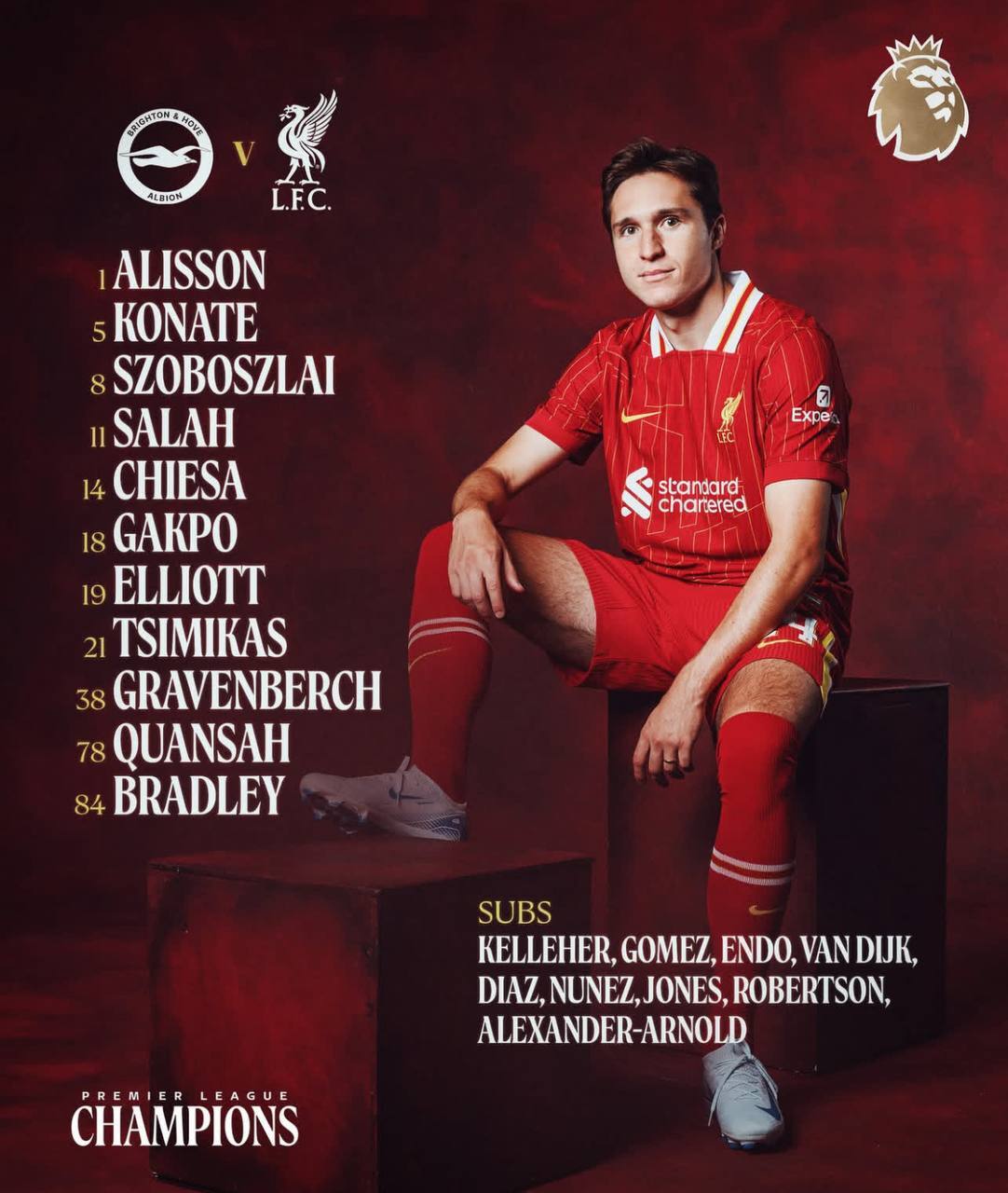 رویداد۲۴| لیورپول با ترکیب زیر برابر برایتون به میدان خواهد رفت.