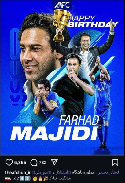 رویداد۲۴| صفحه AFC به زبان فارسی، به مناسبت تولد فرهاد مجیدی پوستری منتشر کرد و از او به عنوان اسطوره تیم ملی ایران و استقلال یاد کرد.