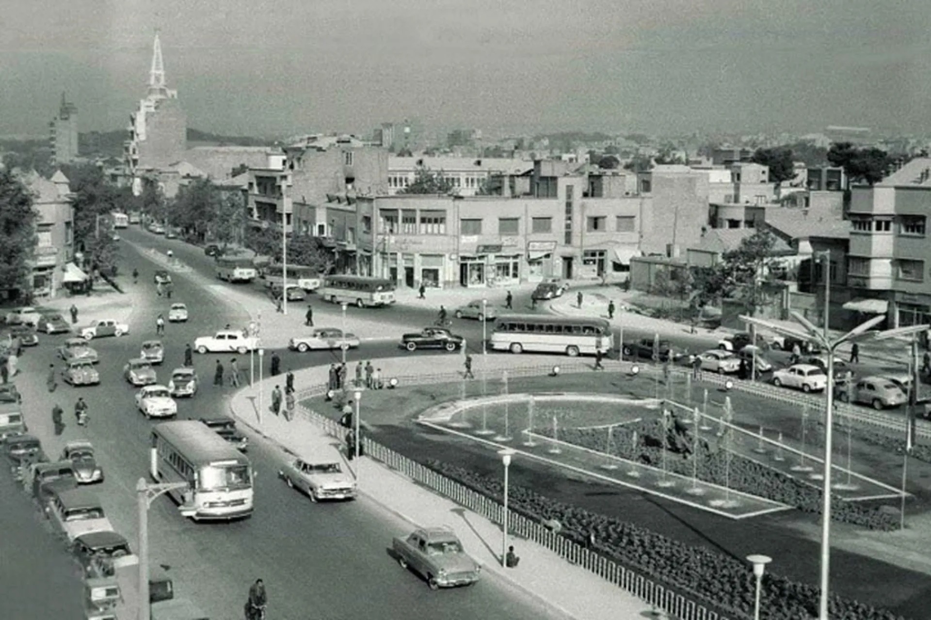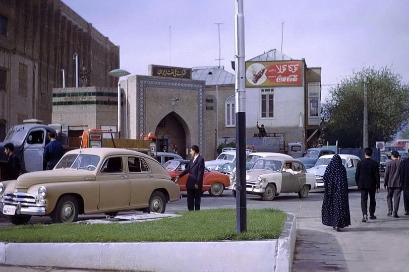 تصویر قدیمی از پمپ بنزین قدیمی در میدان بهارستان؛ سال ۱۳۳۸