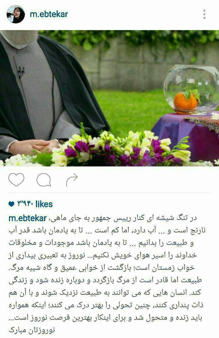معصومه ابتکار معاون رییس جمهور و رئیس سازمان محیط زیست در اولین پست اینستاگرام خود در سال جدید توضیحات جالبی در خصوص سفر هفت سین رییس جمهور داد